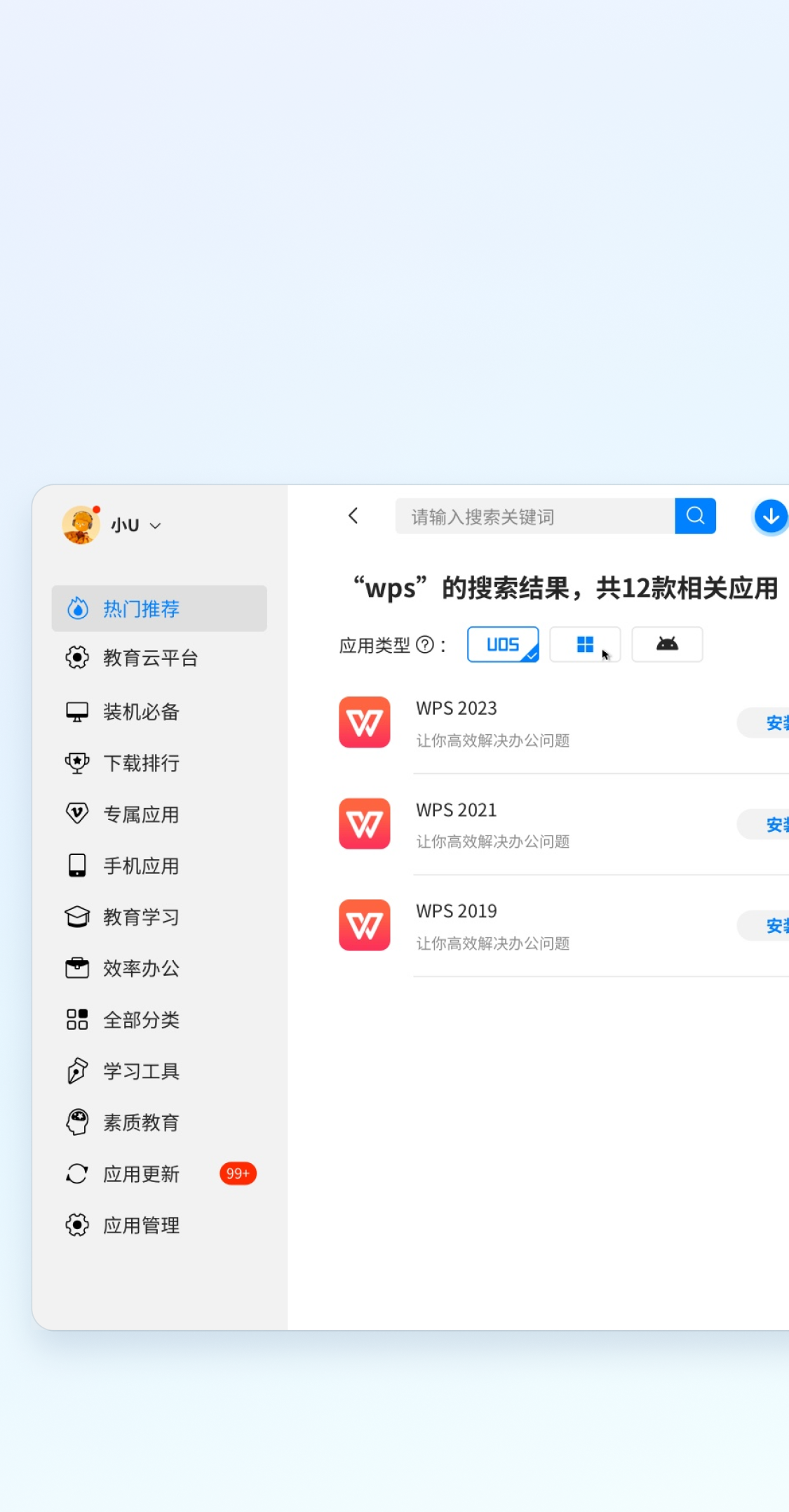 兼容统信桌面操作系统应用生态,应用商店可为单个应用上架多个版本,并标记提示可按需使用。