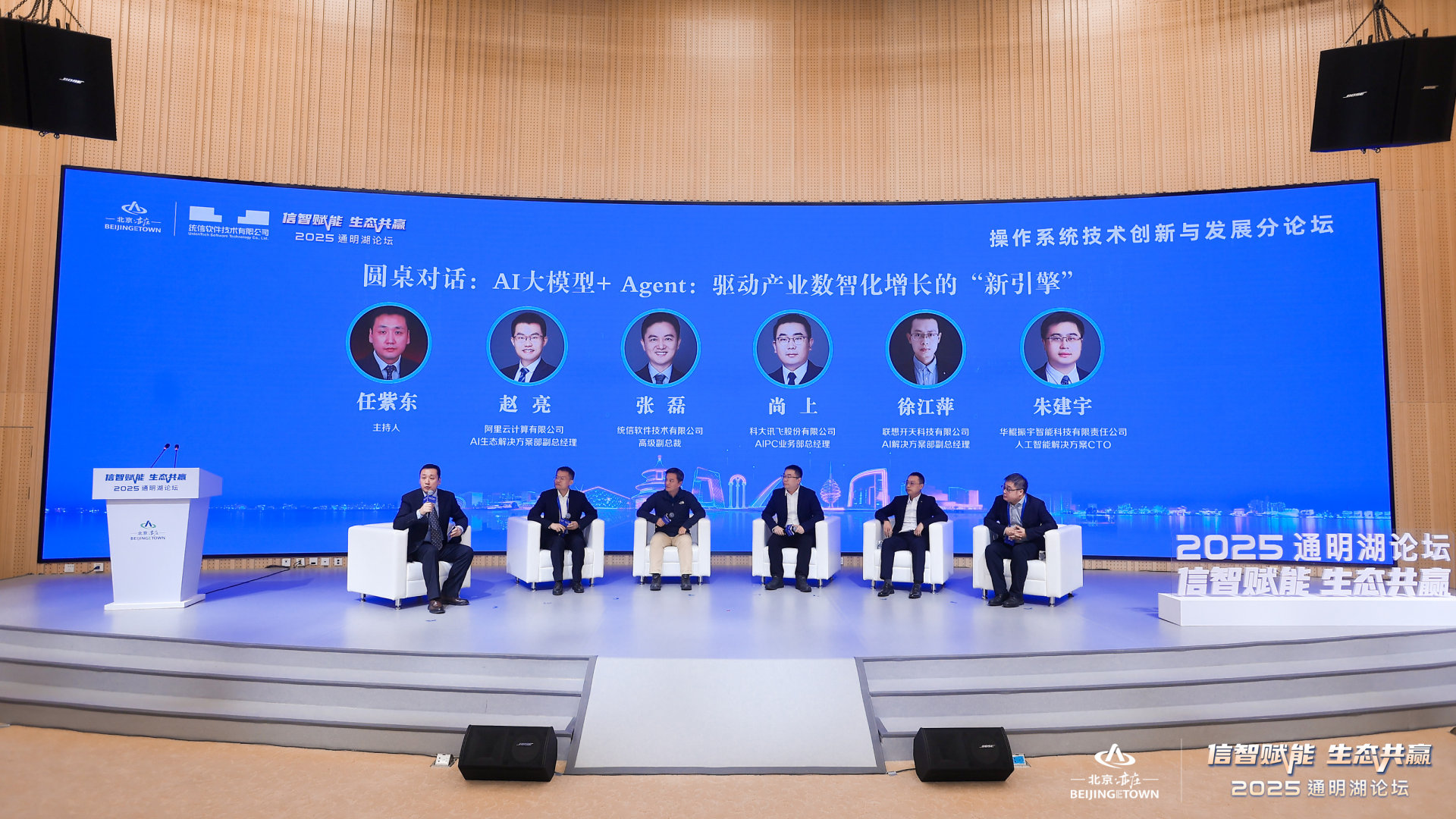圆桌讨论环节,阿里云 AI 生态解决方案部副总经理赵亮、统信软件高级副总裁张磊、科大讯飞 AIPC 业务部总经理尚上、联想开天 AI 解决方案部副总经理徐江萍、华鲲振宇人工智能解决方案 CTO 朱建宇五位专家围绕“AI 大模型+Agent:驱动产业数智化增长的‘新引擎’” 这一核心议题展开深度对话,形成了重要共识。