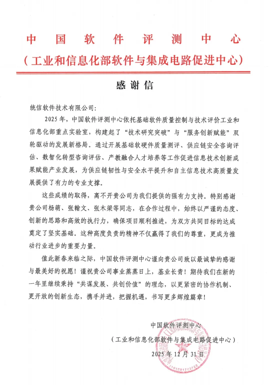这一封封感谢信,不仅承载着过往协作的珍贵记忆,也映照出统信软件在信息技术自主创新道路上的扎实足迹与广泛贡献。