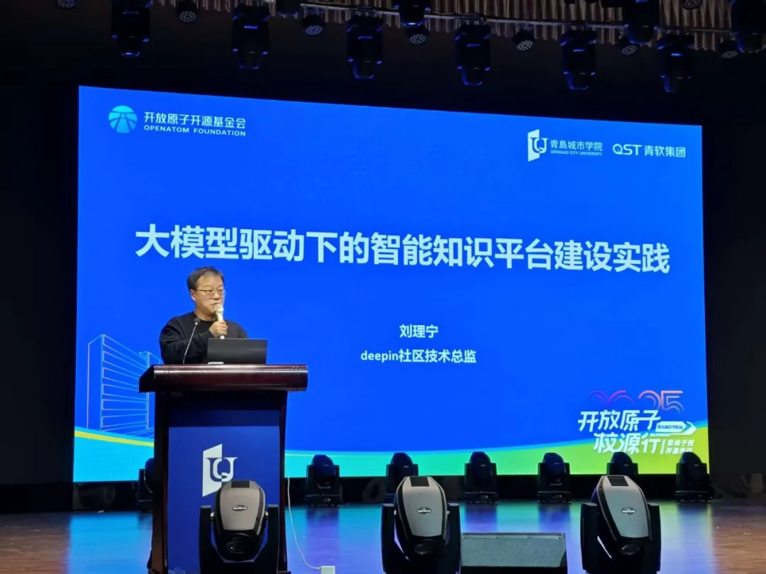 活动中,统信软件 deepin(深度)社区技术总监刘理宁发表演讲 ——《大模型驱动的智能运维知识平台建设实践》,系统性地分享了统信软件在大模型驱动下智能运维知识平台的建设实践,为现场师生描绘了 AI 时代运维发展的新图景: