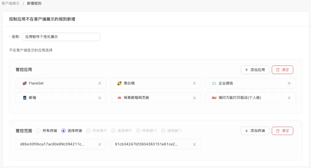 案例:某国有银行通过该功能,实现了 100+ 款业务应用定向分发。如北京分行的适配工具不会推送到上海分行的终端,避免了应用混乱。