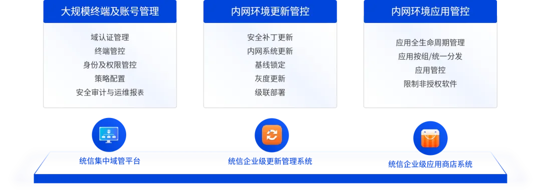 统信软件面向政企客户打造了完整的企业级管理产品矩阵:
