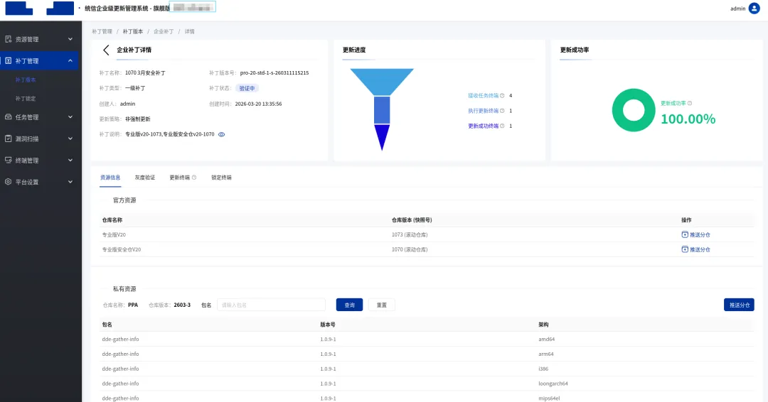 补丁自动归集:统信软件官方安全补丁、功能更新、驱动程序,甚至企业私有定制补丁,都能集中管理,支持在线同步和离线导入,内网环境也不用愁;