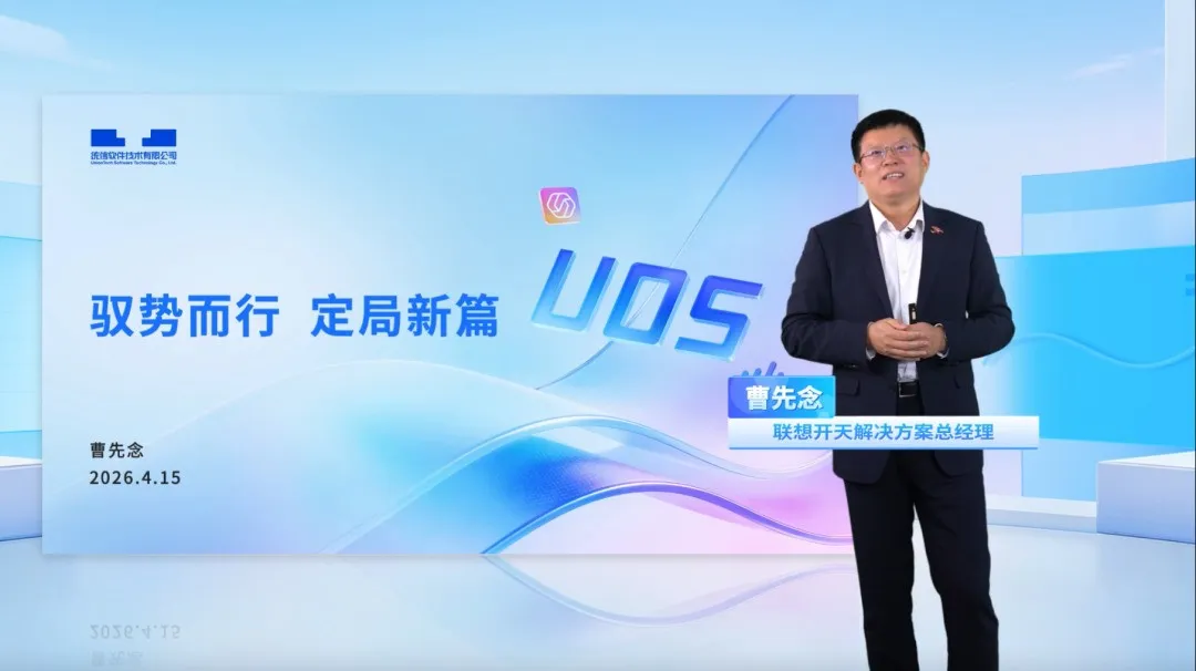 联想开天解决方案总经理曹先念介绍了联想开天与统信桌面操作系统 V25 的适配成果,以及双方联合推出的开天 Clou 信创 AI 一体机。