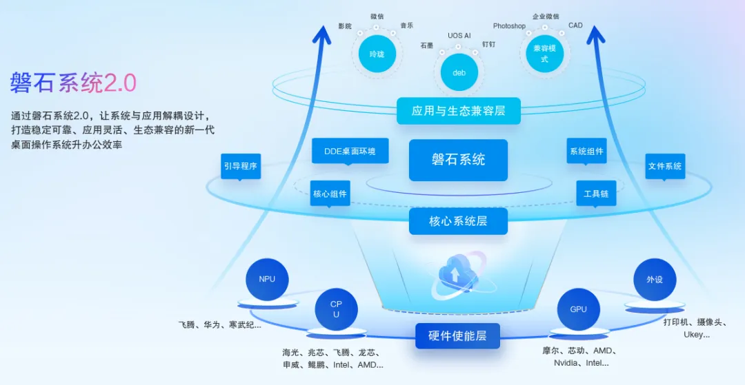 硬件兼容:主流国产芯片和超过 20 万款外设(打印机、高拍仪等)都能用。