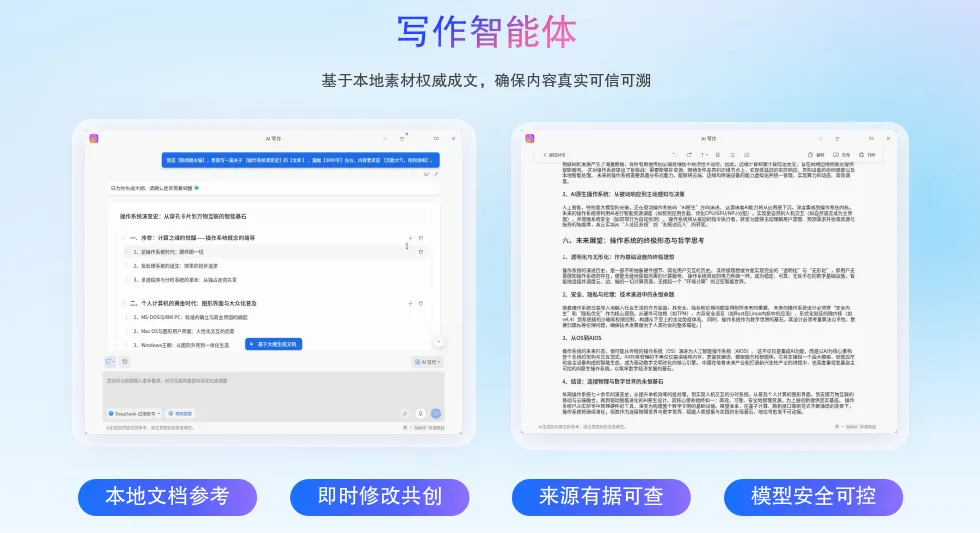 对于政企用户,写作智能体还支持接入企业私有化部署的大模型。数据全程不出公司网络,安全合规。