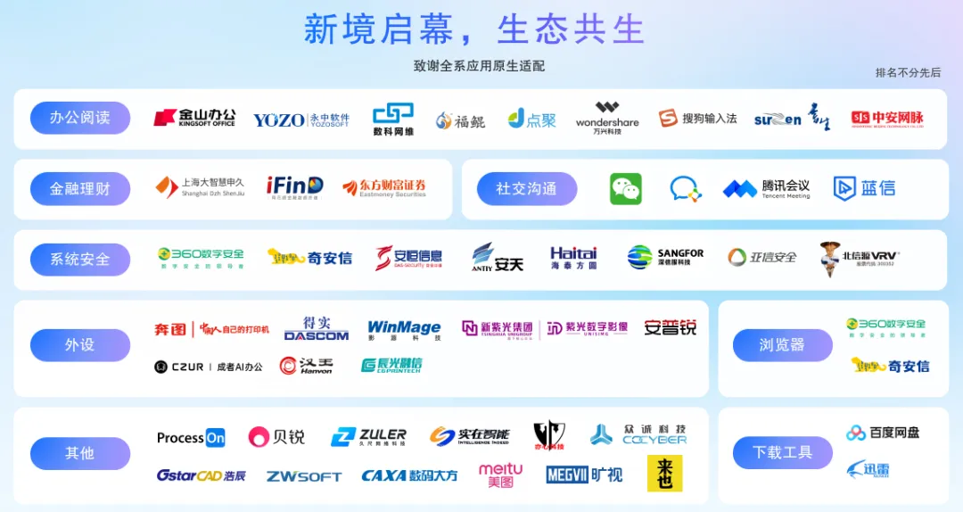 可靠生产力,离不开整个生态伙伴的协同支撑。从芯片到整机,从外设到应用,每一次适配、每一行优化,都是统信与合作伙伴共同攻坚的成果。新境启幕,生态共生,统信软件愿与所有伙伴继续携手,在技术适配、联合创新、市场拓展上持续发力,共同筑就更成熟、更智能的国产操作系统生态。