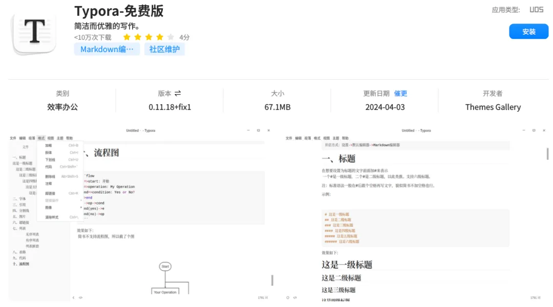 Typora 是一款轻量级 Markdown 编辑器。它打破了传统编辑器源码与预览分栏显示的模式,创新地实现了“所见即所得”的即时渲染功能。软件支持专注模式、打字机模式、表格、代码块、数学公式及流程图等多种功能,为写作提供一个无干扰的界面。